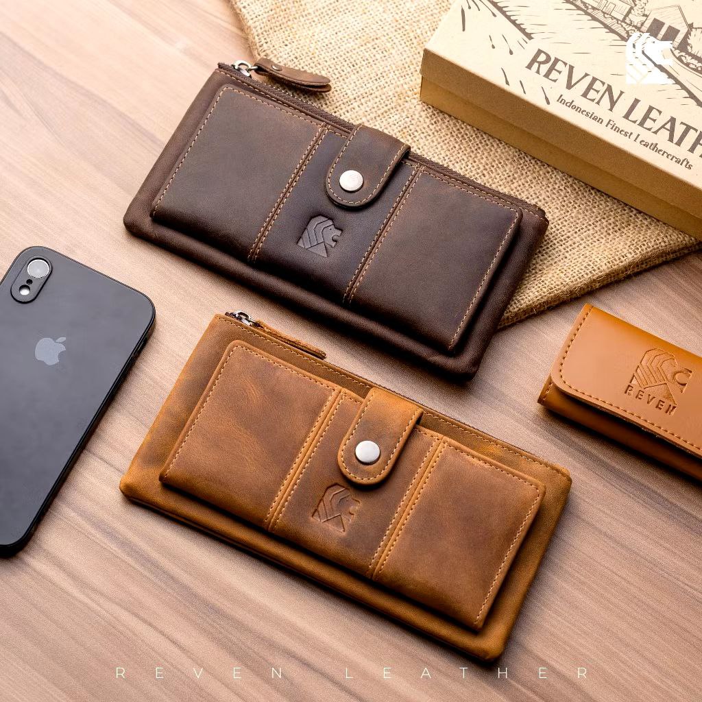 Berbahan Kulit Sapi Asli jenis Crazy Horse tekstur halus dan Doff